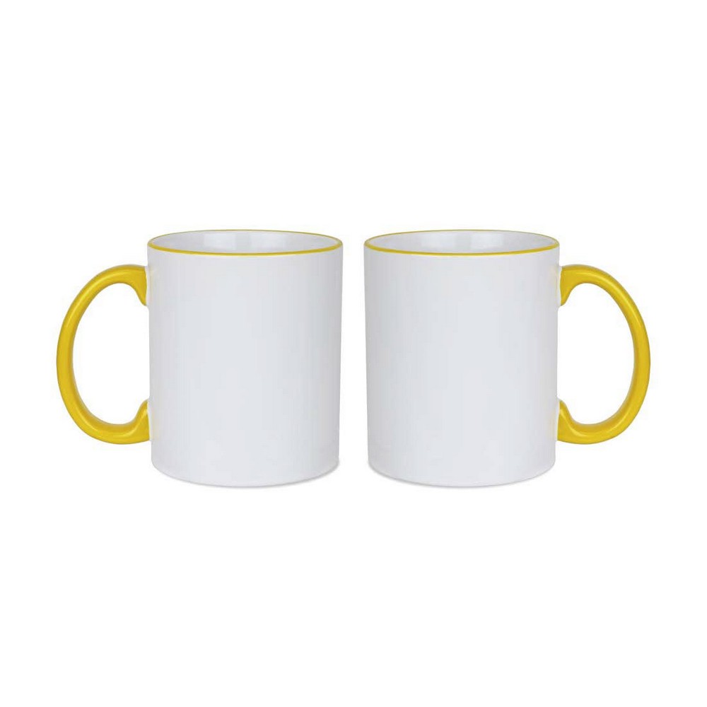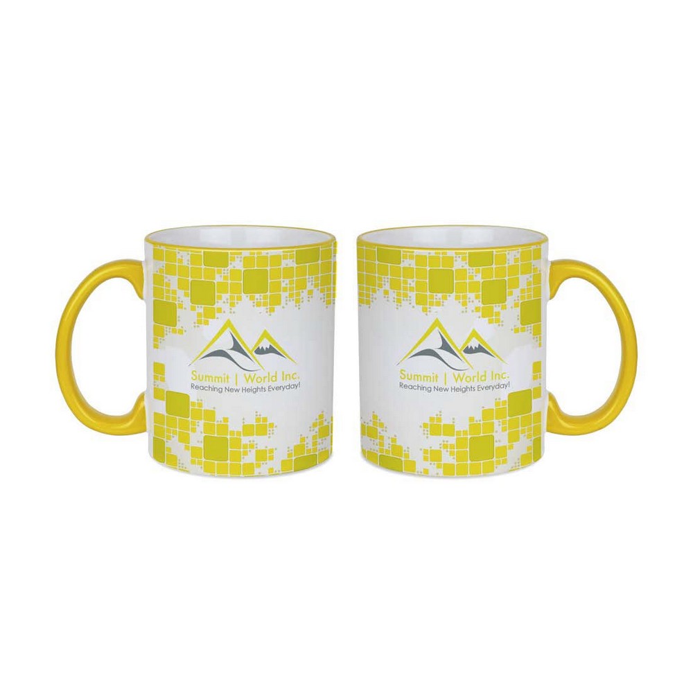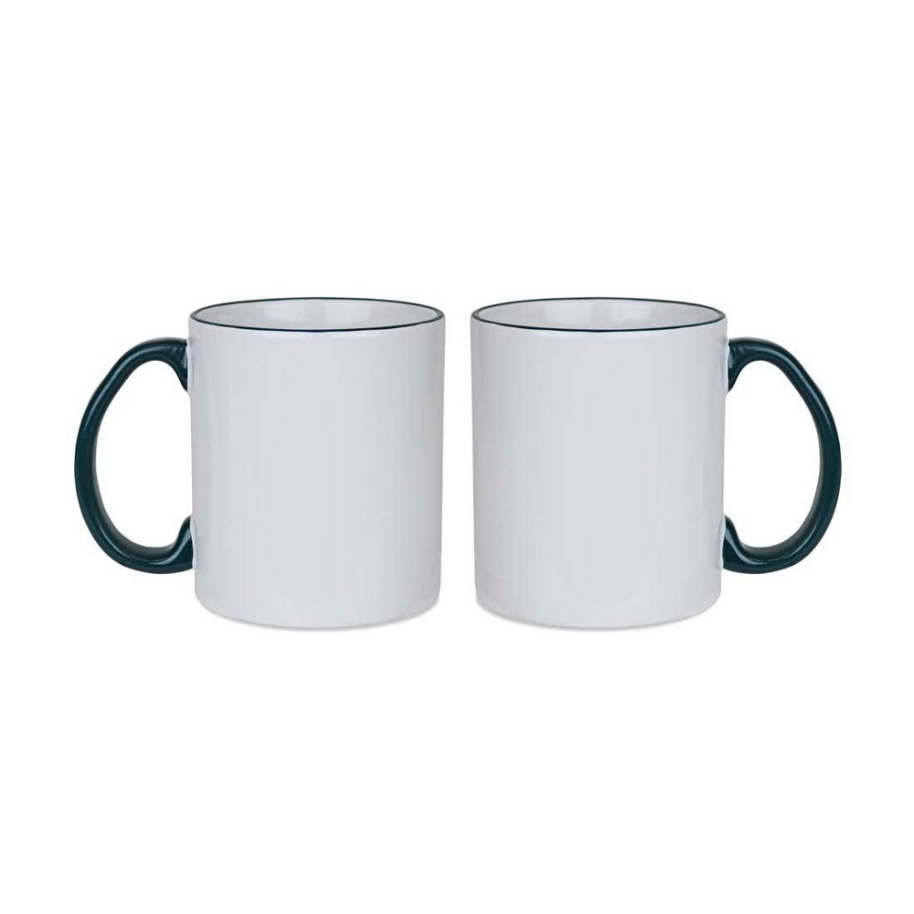 This full-color printed mug features a two-tone finish with a white exterior and colored rim & Handle. Superior quality ceramic that is top-rack residential dishwasher and microwave safe. Complies with FDA, Prop 65. 3.26″ W x 3.75″ H