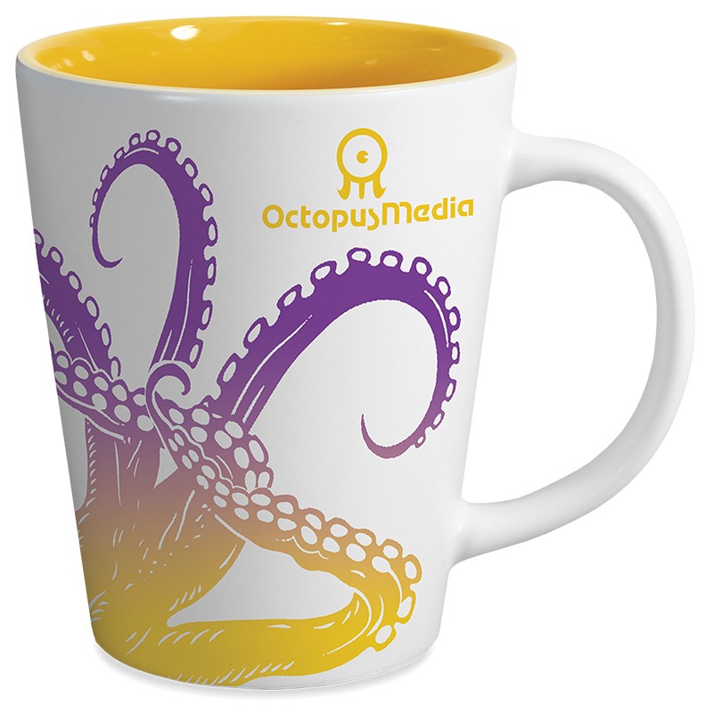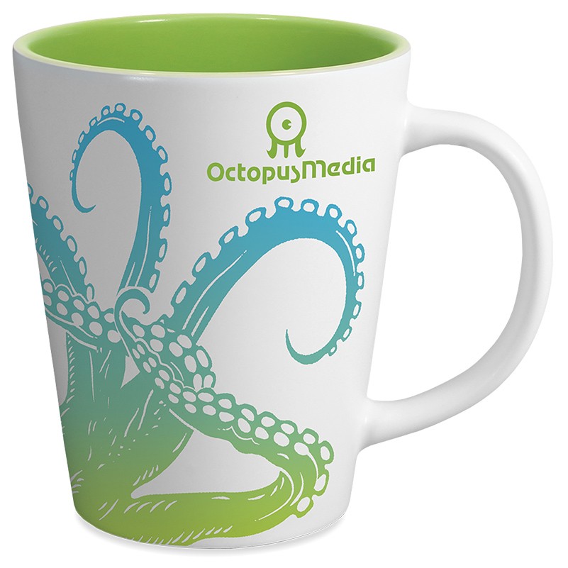 Matte white outer and semi-gloss bright inner colors update this classic latte mug. It is microwave safe does not require protective over-pack saving you & your customer money! It is hand wash only and comes with full bleed sublimation. Complies with FDA, Prop 65. 4.375″ H x 3.5″ Diameter x 2.5625″ Diameter