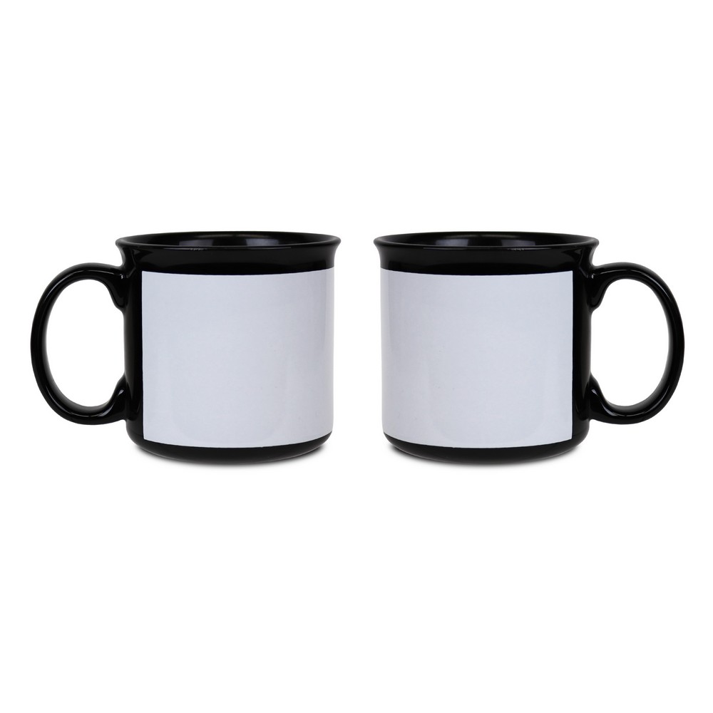 This ceramic trendy camp style silhouette with a glossy black finish. This mug is the perfect addition to your collection! Xtra-large comfortable C-shaped handle with a large billboard for maximum imprint area. Top-rack residential dishwasher and microwave safe. Complies with FDA, Prop 65. 3.7″ H x 3.7″ H x 5.5″ W