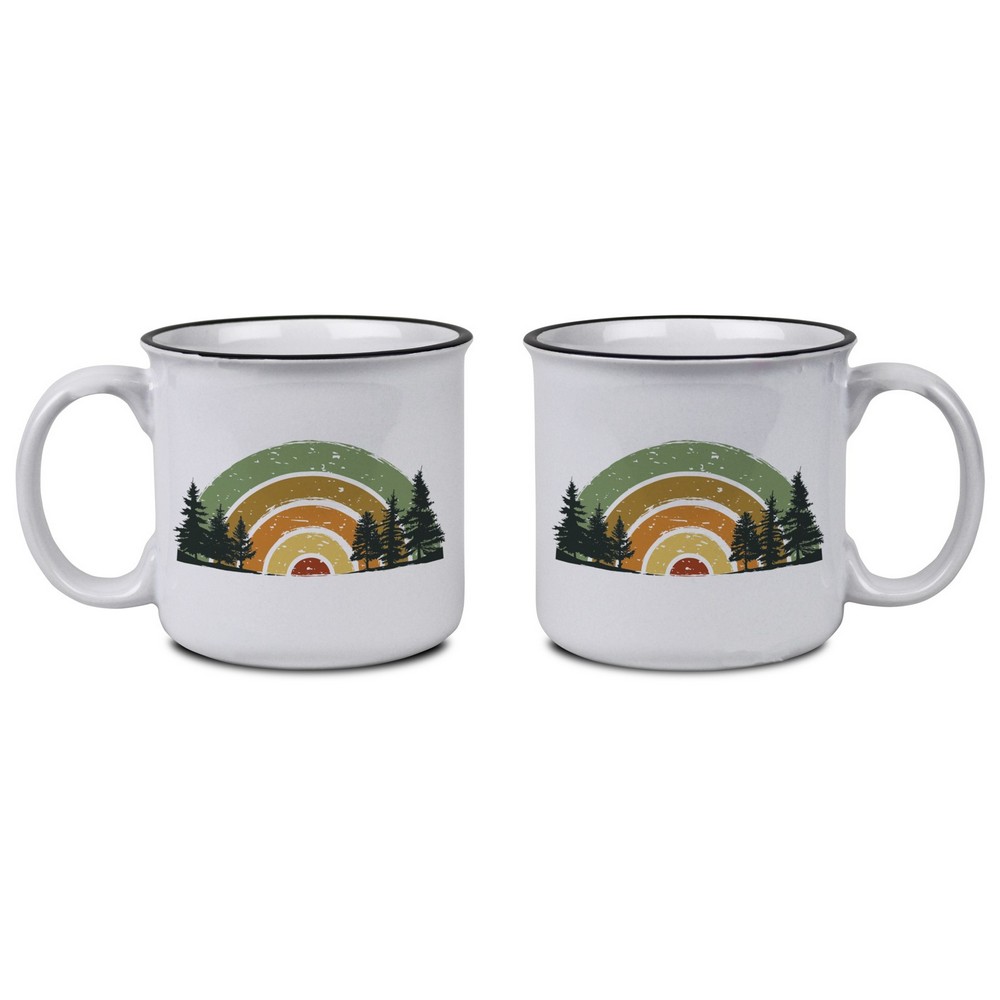 17 Oz. ceramic trendy camp style silhouette makes this mug the perfect addition to your collection! Xtra-large comfortable C-shaped handle with a large billboard for maximum imprint area. Top-rack residential dishwasher and microwave safe. 3.7″ H x 3.7″ H x 5.5″ W