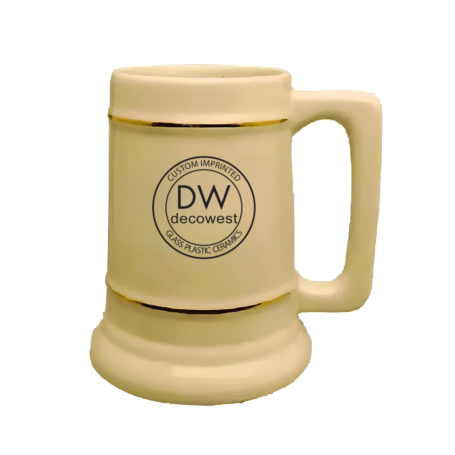 Ceramic Beer Stein 7198 – 28 oz Natural with Gold Bands