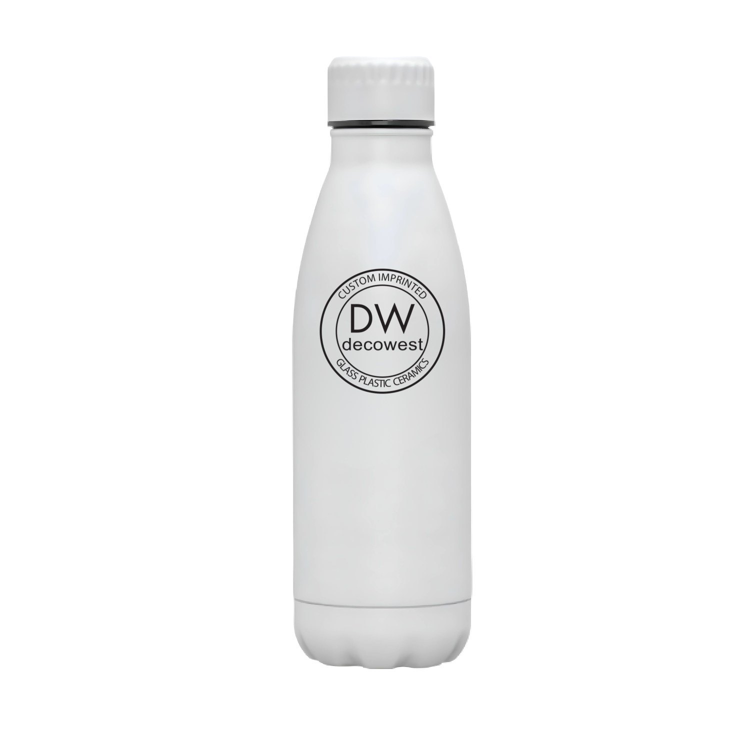17 oz. double walled vacuum insulation stainless steel water bottle that will keep drinks colder or hotter longer. Matte finish with classic cola shape. Screw-on leak resistant lid. BPA Free. Please inquire for engraving or 4 color process printing.