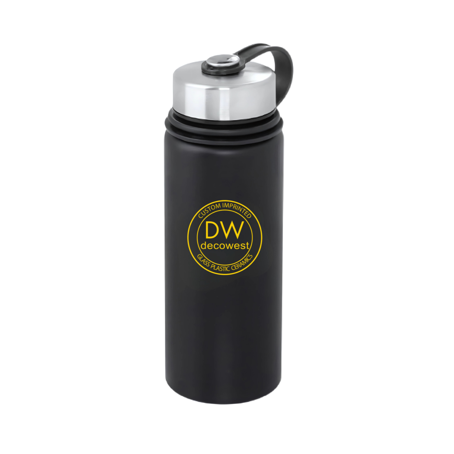 20 oz. double walled vacuum insulated stainless steel water bottle that will keep drinks cold up to 24 hours or hot up to 12 hours. Powder coated finish with attached screw-on leak resistant lid and loop handle. BPA Free. Please inquire for engraving or 4 color process printing.